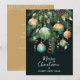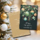 Elegant Christmas holiday flat greeting cards feature a design of pine branches, green and gold Christmas ball ornaments and ribbons on a black background with Merry Christmas & Happy New Year in chic lettering on the front and your personal greeting and names on the back. Order PRINTED and/or INSTANT DOWNLOAD to send digitally. MATCHING items in our collection.