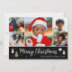 Spread the Holiday cheer with a photo collage Christmas card! Six personalized photos along with your family name and a greeting on the back. This custom design features decorative Christmas trees and stars, with the words 'Merry Christmas' in festive script lettering. A stylish colour palette of black, white and gold colour. Perfect for photos of kids, family, friends and pets!