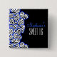Stylish Cobalt Sweet 16 Zebra Heart Design Name 2 Inch Square Button