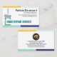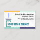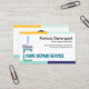 A white cover is encapsulated by colourful stripes at the top and bottom layers of the card. Near the base is a roller brush with a home silhouette. Here lies the business name "HOME REPAIR SERVICE". At the top is your prestigious name, job title and the contact details.