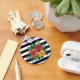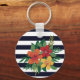 Stylish Colourful Floral on Black and White Stripe Keychain