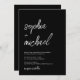 Showcase your love with a modern wedding invitation design that puts your names front and centre. The striking black background provides a dramatic canvas for the elegant white script, beautifully complemented by a clean, minimalist font for the details. This chic and personalized aesthetic is the perfect choice for a sophisticated and intimate celebration.