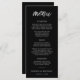 This wedding menu card features a captivating modern script that sets a stylish tone for your reception. The black and white design creates a bold contrast, while the menu items are elegantly displayed in sections for easy navigation. This card is sure to impress your guests and make your wedding menu a delightful part of the celebration.