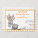 Stylish cookware bridal shower invitation. graphics of cookware decorates the left side of the invitation, with a golden yellow and white checked border around the whole invitation. Personalize all the text to suit your special event. Lovely keepsake invitation the bride to be will love.