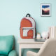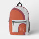 This custom backpack design has a stylish trendy vibe with its simple minimal arch shapes in a bold colour combination of bright coral, magenta pink and dove white. A large script monogram initial on the pocket adds a fashionable pop of style on this elegant designer look that serves as your own personal branding. Personalize with your monogram initial. This backpack is a great choice for back to school, heading to work, travel, leisure time and an active lifestyle.