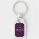 A perfect personalized monogrammed keychain featuring elegant light beige initials on a rich dark purple background. Perfect for couples,