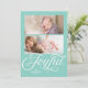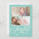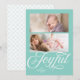 Stylish Joyful Holiday Photo card that can showcase 2 of your photos against a light aqua teal shade background and featuring the word "Joyful" in beautiful cursive script. Card includes aqua teal shade geometric pattern against a white background back side. Check out other holiday items here https://www.zazzle.com/collections/holiday_christmas_new_year_cards-119015800351034065?rf=238364477188679314