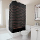 A stylish, elegant customizable black shower curtain, designed with salmon polka dots against a rich black background. There is a CUSTOMIZABLE Christian Scripture which says 'Create in me a clean heart, O Lord', which is based on Psalm 51. The text can be replaced with your motto, name(s), monogram, establishment, etc. Matching accessories available.