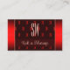 Make a lasting impression with this elegant business card design featuring shimmery red gradient borders and monogram pattern on a dark red background.