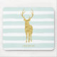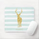 Stylish Faux Gold Foil Deer on Mint Stripes Mouse Pad