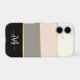 Cover your phone in a fashionable case featuring chic modern stripes in black, gray, blush pink and creamy eggshell white. Thin faux-gold lines separate the colors in designer style. A text template is included to personalize with your name and monogram initial. When personalizing the name in script, be sure to leave the leading and trailing boxes before and after your name. These cause the swashes at the beginning and end of your name to appear and add style to the name.