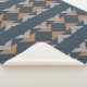 A cozy, modern aztec kilim style geometric pattern in bold, rich colours of navy, faux copper, and grey.