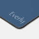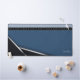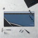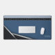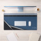 Upgrade your office or home setup with this eye-catching desk mat. The design features a sophisticated colour palette of blue and black, divided by a striking silver-like line. A decorative geometric border runs along the top, adding visual interest. The bottom corner has a distinct layered appearance with the black area seemingly peeking out from under the blue. This desk mat not only protects your desk from scratches and spills but also provides a comfortable and consistent surface for working. Personalize it with your name or a special message to make it a unique and thoughtful gift for coworkers or your home office.