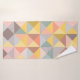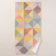 This stylish bath towel set features a classic geometric shapes pattern in a beautiful autumn earth tones colour palette of grey, blush, yellow, and sage green.
