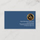 Over at the top are your prestigious name and job title. Below this, in the dark blue layer, is a slogan caption to publicize your services. Change the caption remarks to suit your service needs. This is followed by a faux gold medical logo you can use. To the left of this are the business name and contact details.
