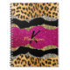 Make back to school fun with this Cute personalised Notebook. It is designed with elegant girly faux glitter bling in pink, silver and gold with trendy animal print pattern.