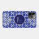 Elegant blue initial monogram iphone case. This blue design features your monogrammed initial and last name in light grey modern typography printed on a patterned geometric blue grey background. This trendy elegant design is perfect for your bedroom, family room or living room. Personalize this stylish pillow with your family's monogrammed initial and last name to create your own custom throw pillow. You can change all text colours and fonts, click to customize further underneath the text customization area this will take you into the design tool. A unique gift for birthday, holidays and any special occasion. Whether for valentines day, Christmas or as a gift in general it makes a great gift idea