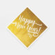 Impress your guests with these stylish glam New Year paper napkins featuring a fake gold background with fake gold glittery confetti and a large white modern script.