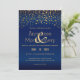 Stylish Gold Confetti Navy Blue Wedding Invitation