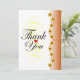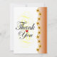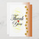 Elegant thank you card in calligraphy with golden flower design in brown and faded design on back