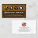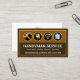 A brown shade layered design is encapsulated by a faux gold rectangular frame. Over at the top are four creative gold icons that can represent some of the work you might offer e.g. the gold hammer is for carpentry and renovation works, the roller brush for home painting, the home bulb logo for electrical and the blue faucet home for plumbing works. This is followed by the business name "HANDYMAN SERVICE" which you can change, a list of services offered and the contact details.