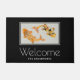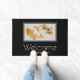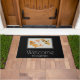 A personalized welcome doormat with an illustration of a pair of gold koi fish swimming together.
