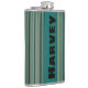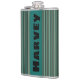 Small, convenient, easy carry travel flask, in style with this turquoise stripe travel flask, personalize text to your own name or fro a custom gift idea. The teal background and wide accent stripe can be changed to any colour.