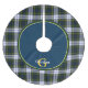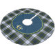 Colourful traditional plaid Christmas tree skirt done in the traditional blue, green, black, white and golden yellow Gordon Dress tartan plaid pattern. A blue, with green, white, and yellow edged circle overlay, in the middle of the skirt, has a yellow single letter monogram, in front, with white text running through it. Personalize the letter and text to suit your needs. Lovely holiday addition to your Christmas decorating.