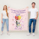 A Pretty Graduate congratulations fleece with bottle of bubbly sparkling wine flute glasses, ice bucket, balloons and confetti all on a dusty pink background. Makes a lovely keepsake / gift to present to your daughter / granddaughter to congratulate her on her graduation. Can be customized by amending the title and event then personalize with the graduate's name and year. Background colour can be changed if needed.