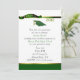 Elegant graduation party invitation, done in white, with graphics of a green and gold banner that reads, Class of, with the year in custom gold tone text. A green and gold graduate's mortarboard cap decorates, under the banner. Personalize all the text to suit your post graduation bash.