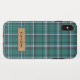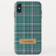 Trendy and Stylish Royal Green Plaid Tartan with Personalized Name on Fabric Label - Unique and Customizable iPhone Case for you. For further customization, please click the "customize further" link and use our design tool to modify this template.