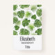 Personalized name badge with a pretty pattern made up of green tropical leaves. Exotic and stylish design.