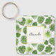 A key chain with a pretty pattern made up of green tropical leaves. Exotic and stylish design.