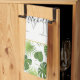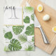 Stylish Green Tropical Leaves Pattern Monogram Kitchen Towel
