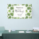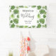 Wedding welcome banner with a pretty pattern made up of green tropical leaves. Exotic and stylish design.