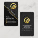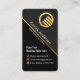 Cover features a triangular trapezium design with a top grey grunge layer set against a lower black piece. The layers are demarcated by a faux gold line. At the top is a gold global logo you can use with your prestigious name and job title directly underneath. Inside the black layer is the business name and the contact details in their respective buttons.