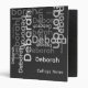 Add your own name to the template to make a seamless pattern design. Your own name repeated in different font styles... all over a dark grey background colour... a nice binder to help you organizing your important notes and studies.