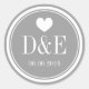 Stylish grey and white monogram wedding favour stickers. Cute heart with monogrammed name initials of bride and groom plus date of marriage. Personalized thank you stickers, save the date label, envelope sealers or favour seals. Elegant typography for bride and groom name initials. Chic design / fancy design. Customizable background colour. ie grey. Romantic love theme design.