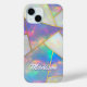 Stylish holographic agate gemstone geometric iPhone 15 Case. To make it extra special, it is also monogrammed and personalized with name or initials or any text you like, click the "customize further" link and use the design tool to modify the design if you like.