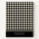 Make a bold statement with this classic style personalized notebook. A chic design featuring the iconic houndstooth pattern, paired with contrasting stripes. Make it yours by adding a name and title, along with additional information on the back. Available with a hardcover or softcover, and a range of different page styles to choose from. Colours: black and off-white.