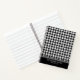 Make a bold statement with this classic style personalized notebook. A chic design featuring the iconic houndstooth pattern, paired with contrasting stripes. Make it yours by adding a name and title, along with additional information on the back. Available with a hardcover or softcover, and a range of different page styles to choose from. Printed colours: black and white.