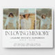 Create a lasting tribute with this stylish In loving memory lettering and photo collage remembrance plaque. Personalize this sympathy plaque with 3 cherished photos, your loved one's name, dates, and a meaningful quote. This plaque is a thoughtful way to honour and remember those who are gone but never forgotten. Make your memories shine and keep them close to your heart.