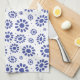 Stylish Indigo Blue and White Daisy Pattern Kitchen Towel