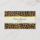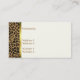 Stylish chic business card done in a brown and black spotted jaguar pattern, with a ivory and gold band, across the middle front. The back is done in ivory, with the jaguar print, on the left side edged with gold. Black and golden brown text, on the front and back, is ready to personalize to your needs. Lovely stand out card that packs a stunning first impression.