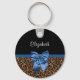 Stylish Leopard Print Elegant Blue Bow and Name Keychain