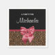 Stay in fashion with these stylish brown fur leopard print paper napkins with an elegant red ribbon tied into a chic bow. Personalize this modern and classy animal print design by adding the name of the party girl. Flat printed image, not actual fur or ribbon.