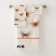 This set of personalized blush pink bath towels features a pattern of stylish boho line art butterflies.