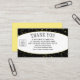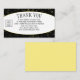 Stylish Business Shower Logo Thank You Networking Business Card, showing pale yellow raindrops against a rich black background. This Thank You business card was designed for people you have networked with at an event and would like to stay in touch with, but can be customized for any purpose. This Business Shower Thank You business card includes CUSTOMIZABLE TEXT where you can add your name and details, and also remind someone where you both met. You can also UPLOAD YOUR LOGO (or a headshot photo). This is part of a collection of business shower cards, invitations and party supplies, designed by Berean Designs.