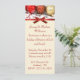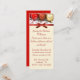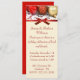 Festive holiday party invitation, done on a long skinny card stock, with a photograph of red and gold Christmas ball ornaments at the top of the invitations. A red satin looking ribbon and bow as a border between the top and the cream coloured text area. Customize the text to suit your needs.