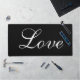 Stylish Love Design White Script Black Background Desk Mat
